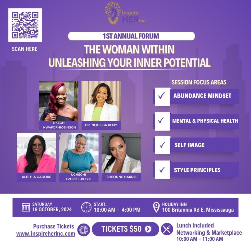 Join us for The Woman Within, a transformative event designed to awaken the extraordinary potential that lies within every woman. This empowering gathering will inspire you to discover your true self, embrace your strengths, and unlock the possibilities that await you.